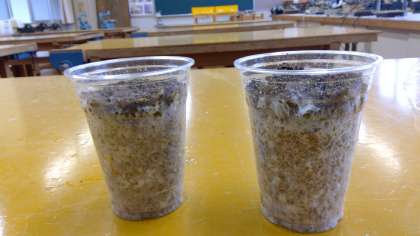 1年生が育てているマッシュルーム、変化がわかりますか?