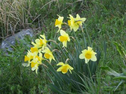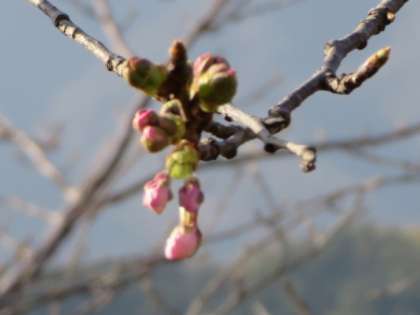 学校南側にある桜のつぼみが膨らんでいます。 学校北側の斜面には、きれいな水仙が咲いています。