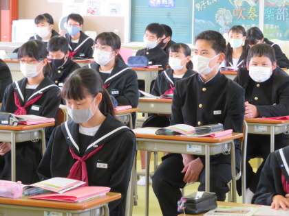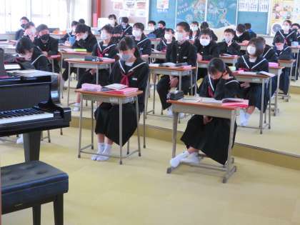 1年生は、歌を聞いて曲のイメージをつかんでいます。