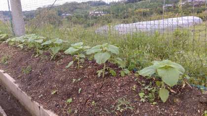 ひまわりが大きく育っています。 周りの草も、負けずに大きくなるので除草が大変です。