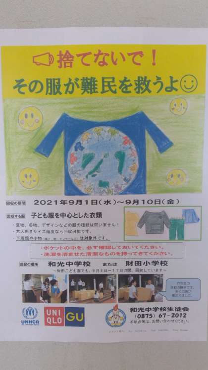 9月17日まで延期します。 家に着なくなった服がある人は、ぜひ持ってきてください。 ご協力、お願いします。