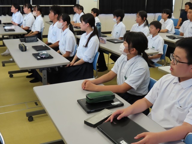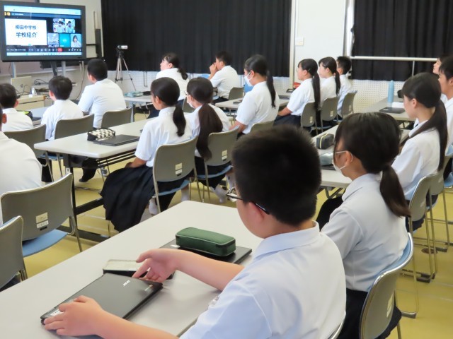 7月2日(水)、美術の授業で石川県の柳田中学校、仁尾中学校の3校でオンライン交流を行いました。