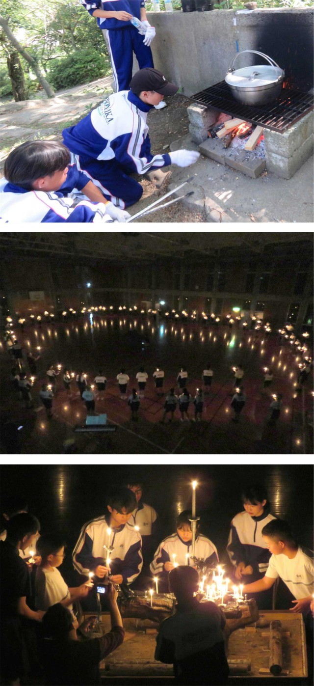 屋島集団宿泊学習 公開日 2025/10/16 更新日 2025/10/20 1年生 2025年10月9日(木)〜11日(土) 1年生の屋島集団宿泊学習が行われました。KIZUNA~青春・協力・笑顔のあふれる学びの森~というテーマを掲げ、カッター訓練や野外炊事などに取り組みました。ふだんの学校生活では経験できない様々な活動を通して心身ともにたくましく成長しました。