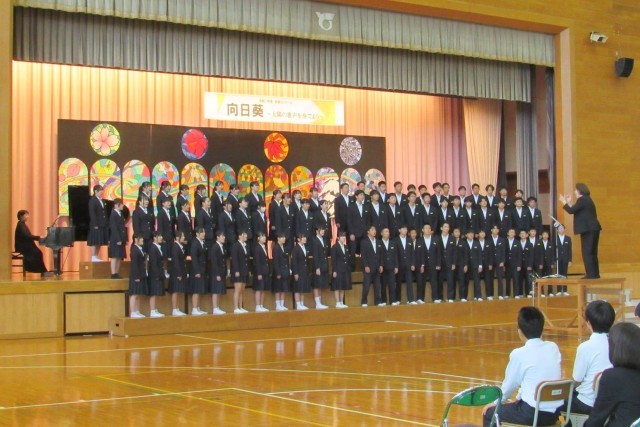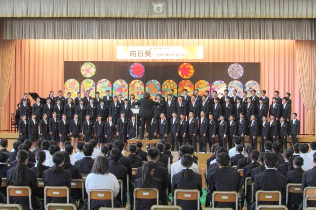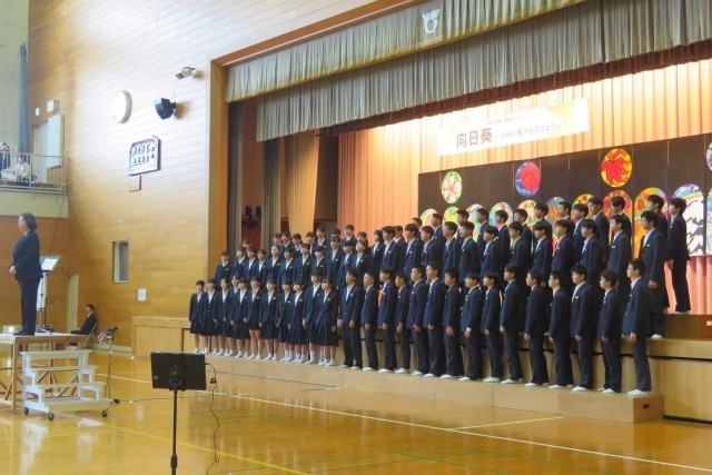 合唱コンクール:有志合唱「正解」 公開日 2025/10/28 更新日 2025/10/28 学校全体 2025年10月25日(土) 合唱コンクールの最後を飾ったのは有志メンバーによる合唱「正解」でした。放課後に遅くまで一生懸命に練習した成果を発揮し、心に響く素晴らしい合唱を披露してくれました。音楽の先生による講評の後、審査結果の発表と表彰状の伝達が行われ、盛大な拍手とともに合唱コンクールは閉会しました。運営や準備などに尽力してくれた生徒会役員と実行委員のみなさん、ありがとうございました。