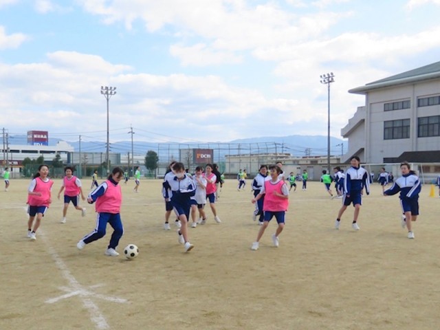 校内球技大会 公開日 2026/03/12 更新日 2026/03/12 1年生 2026年3月10日(火) 1年生の球技大会が開催され、男女ともにサッカーで汗を流しました。年度末が近づき、現在の学級の仲間たちと過ごすことのできる時間は残りわずかです。最後にみんなとの楽しい思い出をつくることができました。