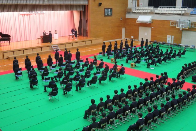卒業式の予行 公開日 2026/03/12 更新日 2026/03/16 学校全体 2026年3月12日(木) 全校生徒が体育館に集い、卒業証書授与式の予行を行いました。本番と同様に起立・礼のタイミングを合わせたり、大きな声で式歌を歌ったりしながら式の流れを確認しました。明日は感謝の気持ちを込めて式に臨みましょう。