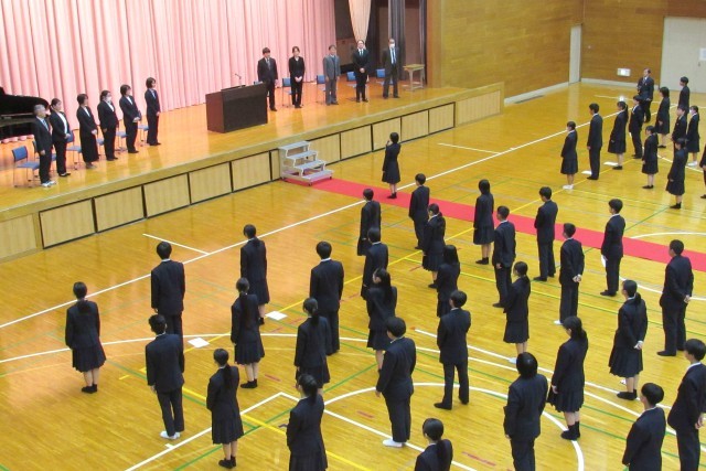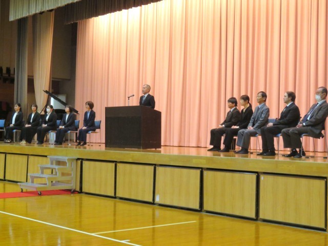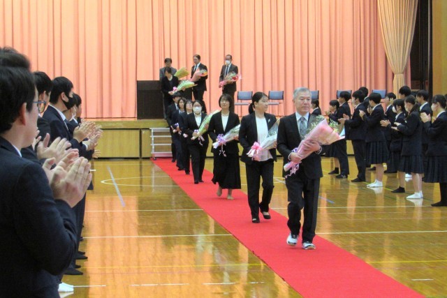 転退職されることとなった先生方とのお別れの会が行われ、一人ひとりの先生から最後のメッセージをいただきました。そして、生徒を代表して生徒会長からお礼の言葉が伝えられました。ありがとうございました。