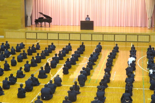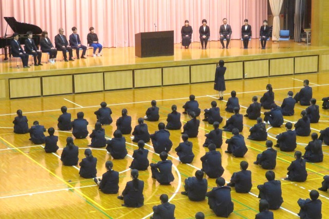 新任式と始業式 公開日 2026/04/07 更新日 2026/04/07 学校全体 2026年4月7日(火) 新しく本校に着任した先生方の紹介が行われました。続く始業式では、進級して2年生と3年生になった生徒らが新学級で整列し、緊張した面持ちで校長先生の式辞に耳を傾けました。明日は入学式です。
