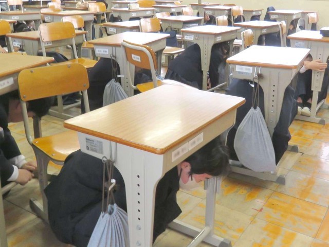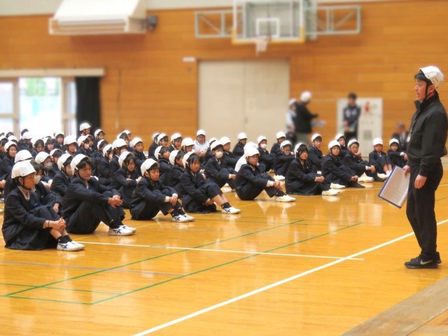 避難訓練 公開日 2026/04/09 更新日 2026/04/09 学校全体 2026年4月9日(木) 全校集会に先立って避難訓練が行われました。机の下に隠れる安全確保行動の後、放送の指示に従って体育館に避難しました。万が一に備えて避難経路を確認する習慣を身につけておきましょう。