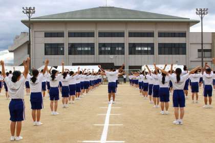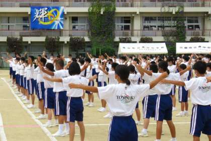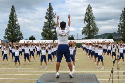 体育祭:再開の一斉体操 公開日 2021/09/29 更新日 2021/09/29 学校全体 2021年9月29日(水) 午後から体育祭の続きが行われました。 一斉体操で体をほぐし、競技の再開に備えました。