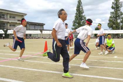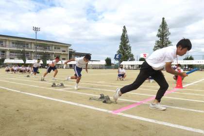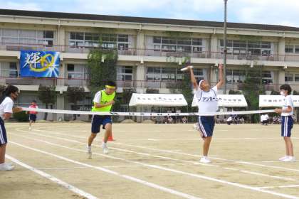 体育祭:学級対抗男子800mリレー(2年生) 公開日 2021/09/30 更新日 2021/09/30 2年生 2021年9月29日(水) 2年生の学級対抗「男子800mリレー」です。 教員チームが飛び入り参加し、校長先生も激走して日ごろ鍛えた健脚を披露しました。