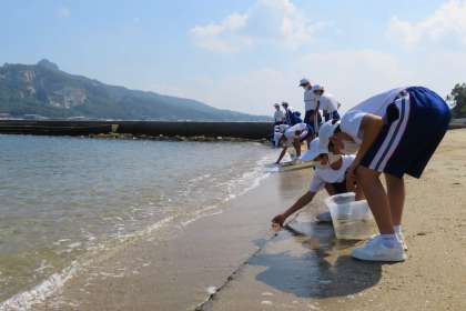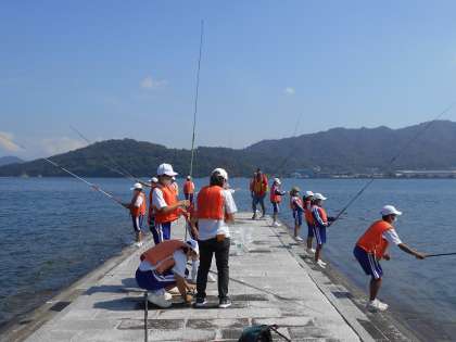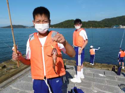 屋島体験活動:魚釣り(1年生) 公開日 2021/10/05 更新日 2021/10/05 1年生 2021年10月5日(火) 1年生全員が香川県立屋島少年自然の家に出かけ、さまざまな体験活動を行いました。 海岸での魚釣りではたくさんの魚を釣ることができました。 釣れた魚は感謝の気持ちを込めて海にリリースし、人間と自然との関わりや生き物の命について考えました。