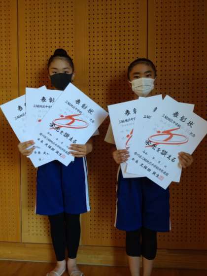 また、校外活動部の新体操競技では、クラブやリボンなどの個人種目で優勝や準優勝と上位を独占しました。