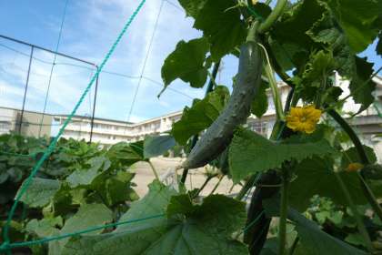 キュウリ(3年) 公開日 2022/06/28 更新日 2022/06/28 3年生 2022年6月28日(火) 3年生が校庭で育てている夏野菜が次々と実を付けています。 キュウリの成長速度はすさまじく、あっという間に巨大化してしまいました。