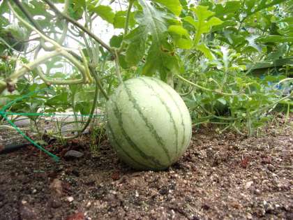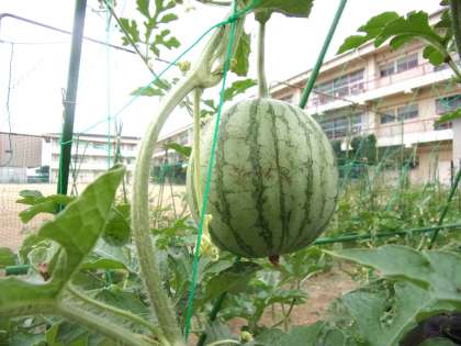 2022年7月7日(木) 校庭の夏野菜シリーズ。 今回はスイカ編です。