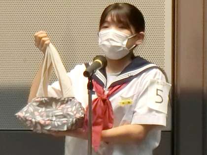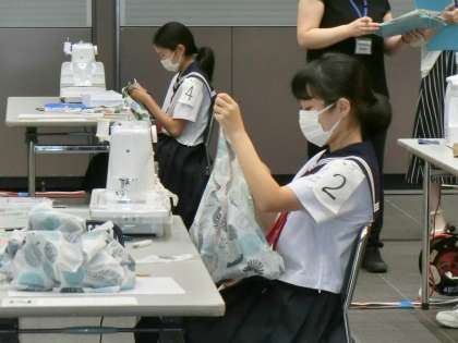 この大会は中学生の裁縫(手縫いとミシン)の技術を競うもので、与えられたテーマについて事前にレポートを作成し、大会当日は制限時間内に作品を製作して、最後にプレゼンテーションを行います。