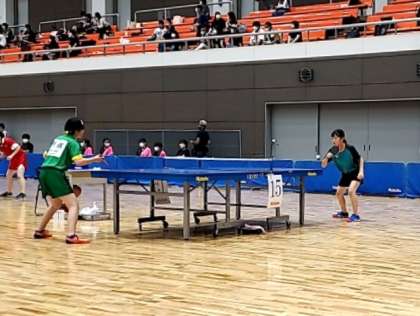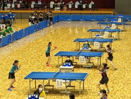 四国中学校総合体育大会の卓球競技が徳島県鳴門市のアミノバリューホールで行われ、団体戦に本校の女子卓球部が出場しました。