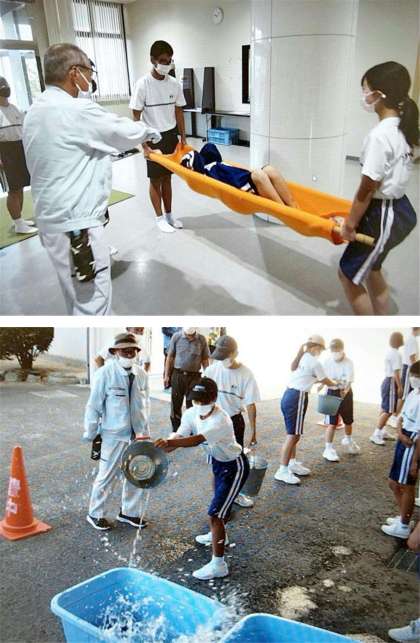 防災委員会 公開日 2022/08/09 更新日 2022/08/09 その他 2022年8月8日(月) 第3回防災委員会が行われました。 地域の自主防災組織の方々を講師として招き、様々な防災技術のノウハウを教えていただきました。 防災委員のメンバーは、猛暑の中で汗だくになりながらも真剣な態度で活動し、多くの知識や技を身につけました。 2学期末の防災訓練では、防災委員がリーダーとなって全校生徒に伝えてもらいます。