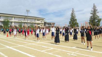 体育祭:一斉体操 公開日 2022/09/17 更新日 2022/09/17 学校全体 2022年9月17日(土) 全校生徒による一斉体操です。 練習の成果を発揮し、キビキビと体を動かすことができました。