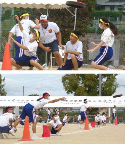 体育祭:3年団種目 SDGs 公開日 2022/09/21 更新日 2022/09/21 学校全体 2022年9月17日(土) 3年生のクラス対抗種目「SDGs」です。 フリスビーを投げてリングをくぐった数を競いました。