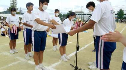 体育祭:閉会式 公開日 2022/09/22 更新日 2022/09/22 学校全体 2022年9月17日(土) 体育祭が終わりました。 これまで経験したことのないような猛残暑や過去最強クラスと言われた台風14号の接近など、想定外の出来事に難しい判断を迫られることもありましたが、臨機応変な対応で無事に乗り切ることができました。 生徒のみなさんの前向きな姿勢のおかげだと思っています。 お疲れ様でした。