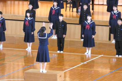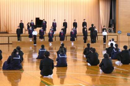 学級ごとに交代でステージに立ち、本番同様に合唱をして仕上がり具合を確かめました。