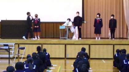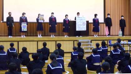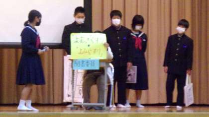 図書委員会の発表 公開日 2022/11/01 更新日 2022/11/01 学校全体 2022年11月1日(火) 全校集会において図書委員会の発表がありました。 読書を通して悩みを解消できる「よむ」+「薬」=「よみぐすり」の話はたいへん役立ちました。 図書室でオススメの「よみぐすり」処方してもらいましょう。 読書ビンゴも楽しそうです。