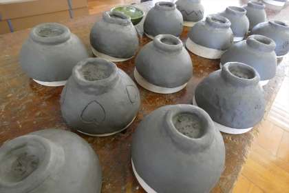 講師の先生から手ほどきを受けながら作品制作に取り組み、立派な器が仕上がりました。