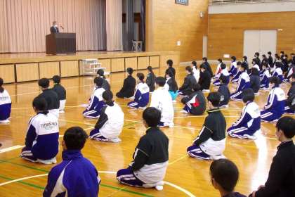校長先生から今学期のふり返りと3学期への期待についてのお話をいただきました。