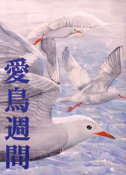 美術部は、愛鳥週間ポスター原画コンクールで1名が特選、1名が入選。(本記事に掲載した画像の1枚目は七宝山のヤマガラを描いた特選の作品。2枚目は財田川のユリカモメを描いた入選の作品です。)