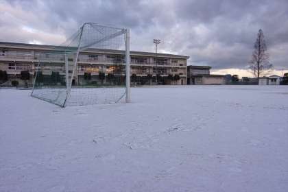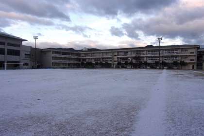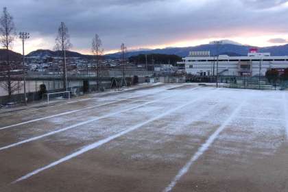 2023年1月26日(木) 今朝の運動場の景色です。 寒波の影響で、うっすら雪化粧をしていました。