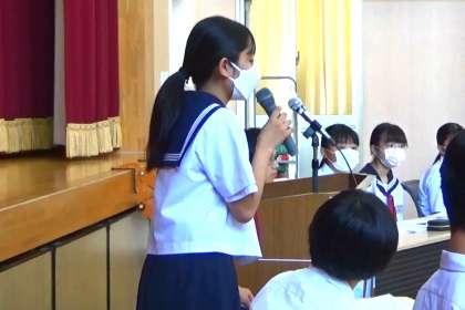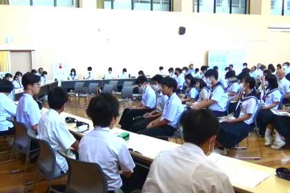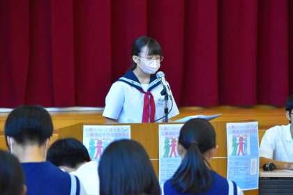 三豊市民交流センターにおいて、人権について語り合う三観地区中学生交流集会が開催されました。本校からは生徒会役員が実行委員として参加し、事前の打ち合わせやリハーサル等の準備を経て本番を迎えました。集会では発表者から問題提起された様々な人権課題について、各校から集まった中学生たちが活発な意見交換をして交流しました。初開催だった昨年より一般参加の生徒数が増え、大きな盛り上がりを感じました。交流集会で学んだことを他の生徒や家庭にも伝え、人権について語り合う環を広げていってほしいと思います。