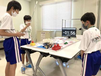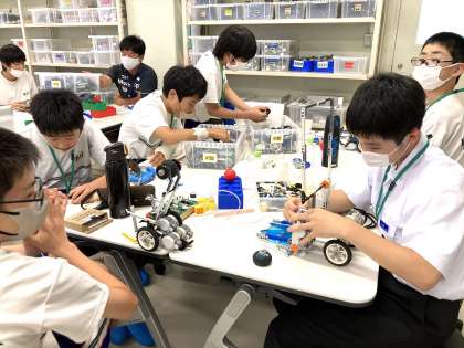香川高専詫間キャンパスで開催された『みとよロボコン2023』に本校の科学部員が出場しました。ロボコンはテーマに沿ったオリジナルロボットを製作して試合形式で競い合うコンテストで、学生たちの創造力を高めるために行われています。1988年に始まった高専大会において詫間電波高専(現在の香川高専詫間キャンパス)が素晴らしい成果を収めたことから、三豊市と香川高専詫間キャンパスがタイアップした『みとよロボコン』が誕生し、子どもたちにロボコンの魅力を伝えています。今回はボールやペットボトルを運んで得点を競う内容で、本校の科学部チームは惜しくも優勝を逃しましたが、チームワークを発揮して健闘しました。