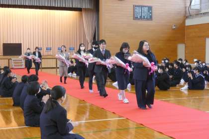 離任式 公開日 2024/03/22 更新日 2024/03/22 学校全体 2024年3月22日(金) 転・退職される先生方とのお別れの会が行われ、一人ひとりの先生から最後のメッセージをいただきました。どの言葉も豊中中学校の生徒たちへの想いにあふれ、心に響くすばらしいものでした。お世話になりました。ありがとうございました。