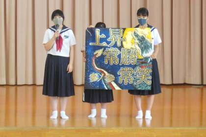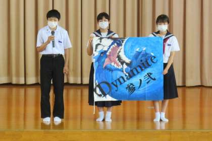 生徒総会において学級旗の発表が行われました。