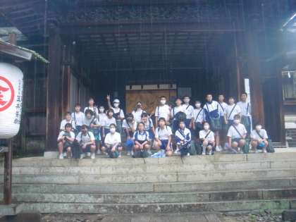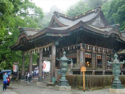 生徒らは雨にも負けずに階段を登り、御本宮にたどり着きました。