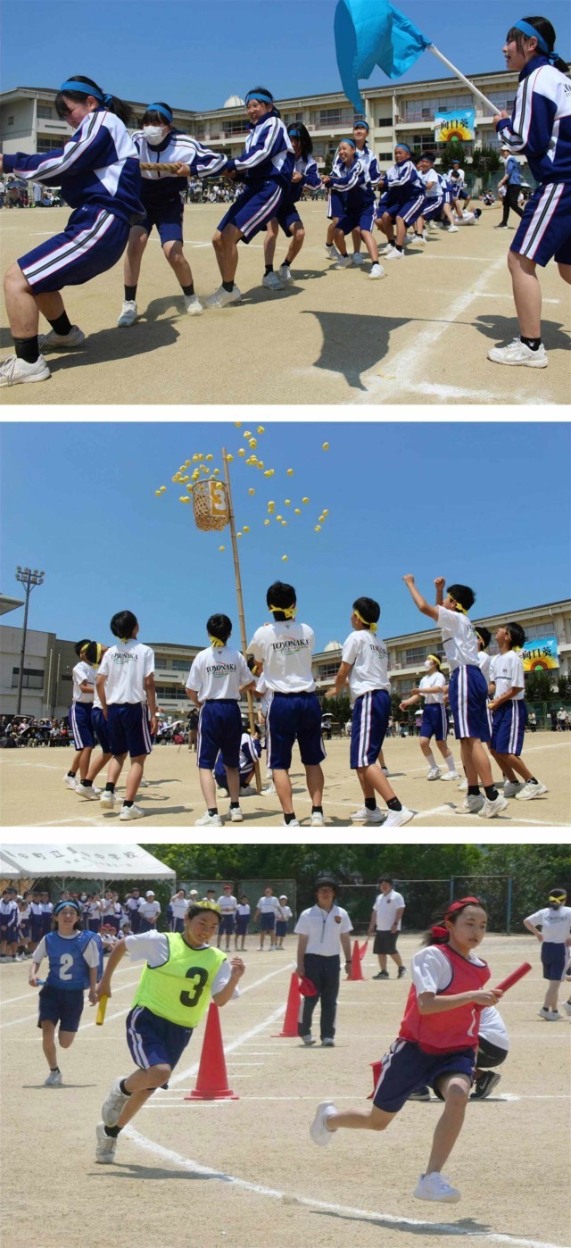 体育祭:2年生の頑張り 公開日 2025/06/04 更新日 2025/06/04 2年生 2025年5月31日(土) 2年団種目の「友情 Sand一致」、学級代表による豊中SASUKEリレー、青春のクラス対抗の綱引きや学級対抗玉入れ、学級対抗選抜リレー、そして全校生徒による豊中総踊り2025に頑張りました。
