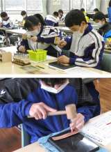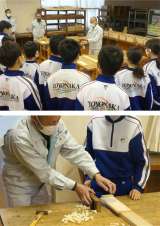 2023年1月16日(月) レザークラフト(革細工)の体験では、金属の刻印棒を...
