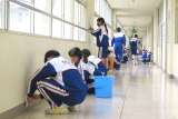 2021年3月5日(金) 放課後、1年生と2年生による壁磨きの清掃奉仕作業が行...