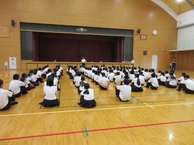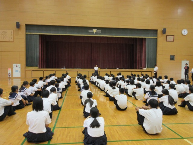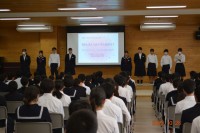 校長先生からは屋島学習に向けて意識してほしいこと、1年生の代表生徒からは屋島学習に向けての決意が述べられました。