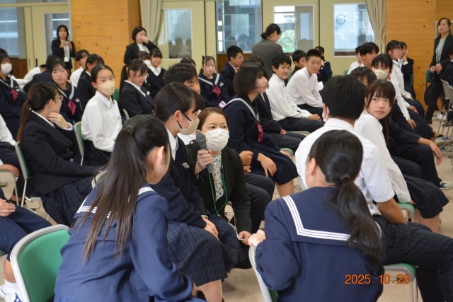生徒の感想より「保健部のミニ劇やそこにカウンセラーの先生の解説などがあってとても分かりやすかった。カウンセラーの先生の話し方も優しくて安心できる1時間になった。歌を聞いたり歌ったりしてストレスを解消するという人が結構多くいてびっくりした。私がストレスを感じてしまったら、10秒呼吸法や運動など今日教わったことを使って解消していきたいと思った。」