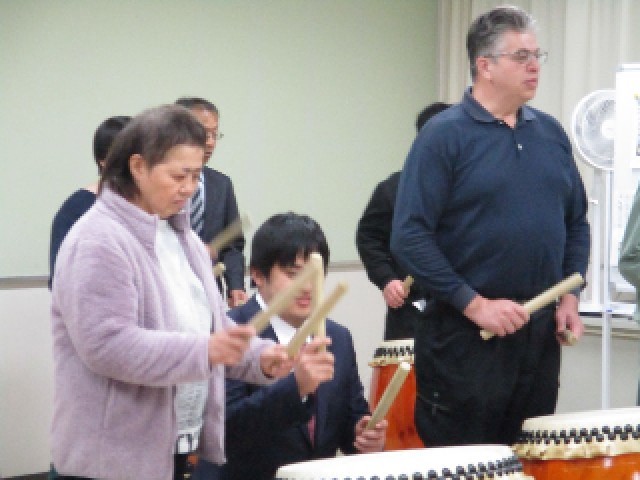 1月8日(木)には、講師の方をお招きし、太鼓の体験をしました。バチの持ち方や太鼓をたたくときの姿勢を確認した後、色々なリズムの演奏に挑戦しました。はじめは右手と左手の打ち分けに苦戦しましたが、最後は皆でリズムを揃えて演奏することができました。
