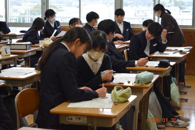 1月30日(金)、2年団は「教科書無償運動」を題材に人権学習を行いました。運動の背景には差別があったことを学び、『この運動に込められた願いとは何か』を真剣に考えました。生徒たちからは「子どもたちに勉強してもらいたい」「差別をなくし、等しく教育を受けさせてあげたい」「全員に教育を受けてほしい」「知識を得て、好きな仕事についてほしい」などの意見が出ました。次回は来週の金曜日に2、3時間目を行います。ご参観いただいた保護者の皆様、ありがとうございました。