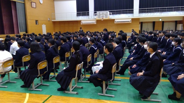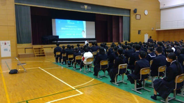 2月20日(金)、三豊市民病院から講師をお招きして、1、2年生を対象に薬物乱用防止教室を行いました。薬剤師の立場から、薬の適切な使い方やタバコの危険性などについて身近で具体的な事例を用いて説明していただきました。生徒たちは薬物の危険性や怖さを学び、これからの生き方について真剣に考えました。今日学んだことを忘れず自分の体と命を大切にしましょう。講師の先生、本日はありがとうございました。
