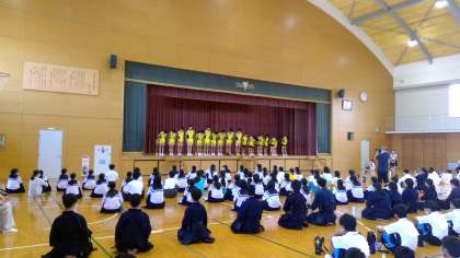 6月28日 部活動壮行会 公開日 2022/06/29 更新日 2022/06/29 学校全体 総合体育大会に向けた壮行会が開かれました。 どの部活動も大会に向けた思いを堂々と発表し、それぞれにエールを送り合いました。 高瀬中学校伝統の応援団も活躍し、総体に向けての士気を高めました。