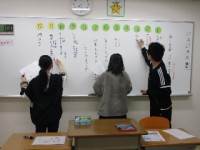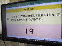 10月27日(月) エンカウンターの授業で「Make 100」というゲームをしました。 答えが数字になるクイズをグループごとに4つ選び、その答えの合計が最も100に近いグループの勝利です。グループの...