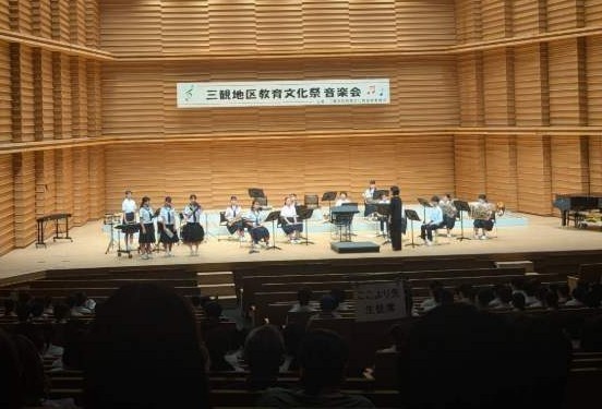 10月9日(木)に、2年に一度開催される三観地区教育文化祭音楽会が、観音寺市のハイスタッフホールで行われました。三観地区の11校の中学校が出場し、本校は吹奏楽部が演奏を行いました。(合唱5校、吹奏楽6校)3年生も一緒の演奏はこれが最後となる感慨深い演奏となりました。
