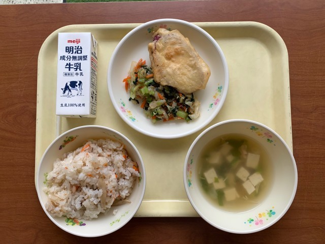 10月16日の給食は、「お祭りメニュー」として、まつりずし・サツマイモの天ぷら・とうふ汁の献立でした。町内の祭りは一段落つきましたが、米価高騰の折、収穫に感謝するという秋祭りの本質からすると、今年は格別な意味合いがあったことでしょう。地域の祭りで活躍した生徒もいたようです。ぜひ、次代の担い手になってほしいものです。