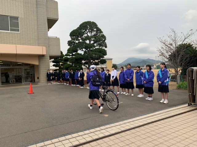 10月31日に投開票された「部活動対抗あいさつコンテスト」は、1位野球部、2位陸上部男子、3位ソフトテニス部という結果になりました。コンテストを通して、第2回の方がいろいろな部の得票が接戦となっていたり、部のプライドや誇りを感じるようなあいさつの場面が多く見られたりするようになりました。それを受けて、生徒会が11月5日~7日の3日間、高まったあいさつへの意識を定着させたいと、学年ごとにボランティアを募り、朝のあいさつ立哨を実施しました。朝の三野津中学校に、大きな爽やかな声であいさつが響き渡っていました。