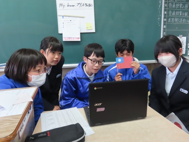 11月26日(水)、6月に友好校協定を締結した台湾の内壢(ネイリー)国民中学校と、本校有志(ネイリーチーム)生徒がオンラインで交流しました。今回の交流のお題は「スポーツ」です。3月には野球のWBCが開催されます。前回の国際大会(プレミア12)で優勝している台湾では、今回も・・・と盛り上がっているようです。交流する度に、台湾の中学生の英語力の高さには驚かされます。来年8月には本校訪問団が、台湾を訪問する予定です。